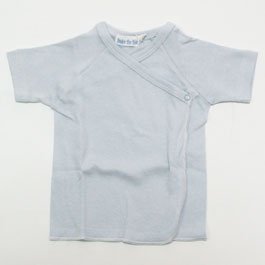前面がスナップボタンで開く、あわせタイプの半袖の短肌着です。